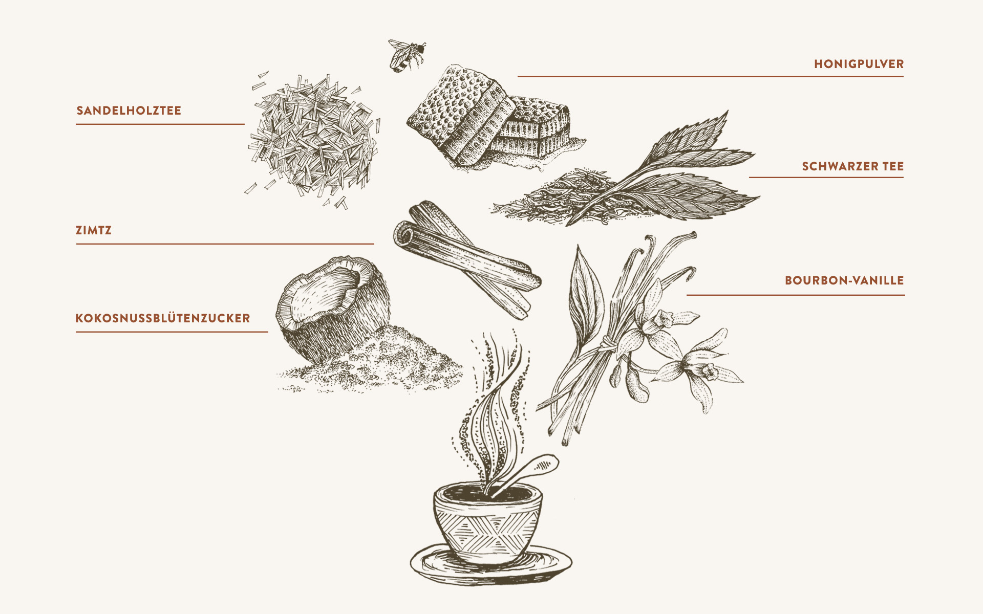 Honig ist ein natürlicher Süßstoff, der seinen Ursprung irgendwo in Südostasien und den tropischen Teilen Afrikas hat. Er geht bis auf 5.500 v. Chr. zurück, als die Ägypter Honig nicht nur als Süßungsmittel, sondern auch als Geschenk an ihre Götter und als unentbehrliche Zutat in Getränken, Medikamenten usw. verwendeten. Die Griechen nutzten ihn als Heilmittel für Kranke, während die Römer, die seine großen kulinarischen Eigenschaften entdeckten, Honig in Gerichte einarbeiteten. Die Bedeutung des Honigs nahm bis zur Renaissance weiter zu, doch nach Beginn der Zuckerherstellung wurde er weniger verwendet. Wir verwenden hochwertigen kanadischen Honig in allen unseren Molina Chai-Produkten.