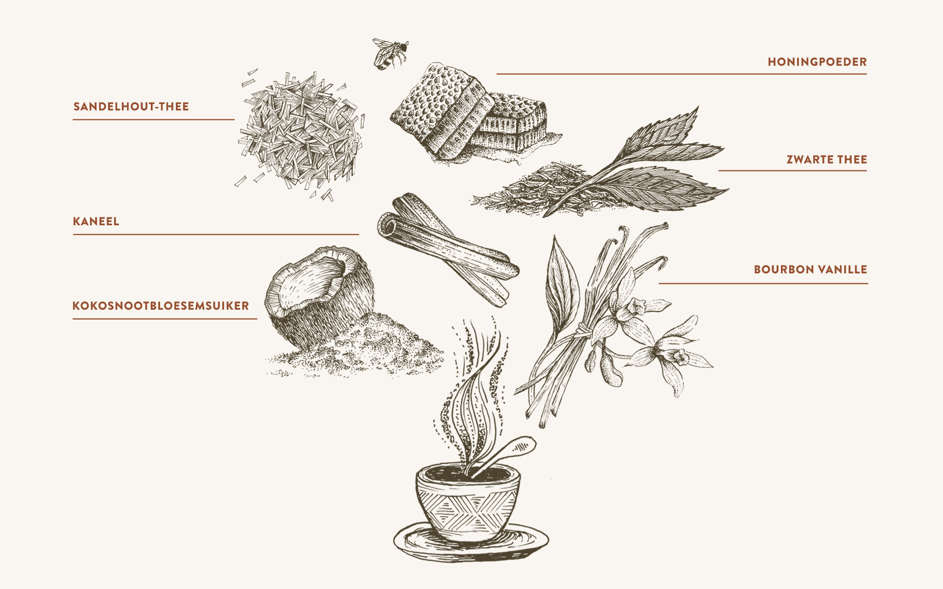 bourbon vanillepoeder, chaispecerijen (steranijs, kaneel, gember, kruidnagelen) *biologisch